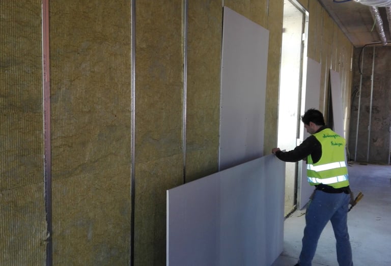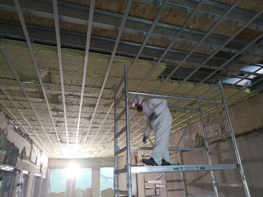 Executamos trabalhos relacionados com isolamento acústico, térmico, tratamento acústico, sistemas de gesso cartonado (tectos e divisórias), LSF (light steel framing), tectos metálicos.